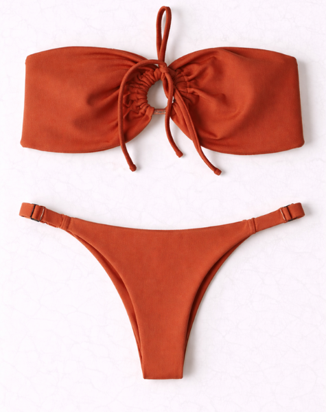 Conjunto Arpoador com Top Tomara que Caia e Calcinha Marquinha Terracota