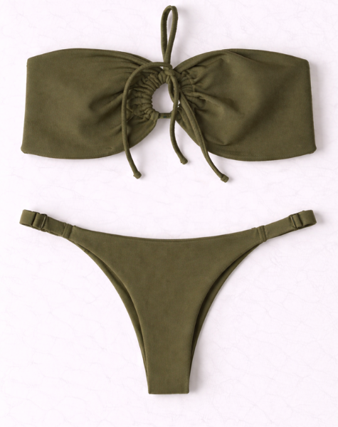 Conjunto Arpoador com Top Tomara que Caia e Calcinha Marquinha Verde Militar