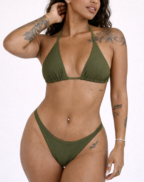 Conjunto Leblon com Top Cortininha e Calcinha Marquinha Verde Militar