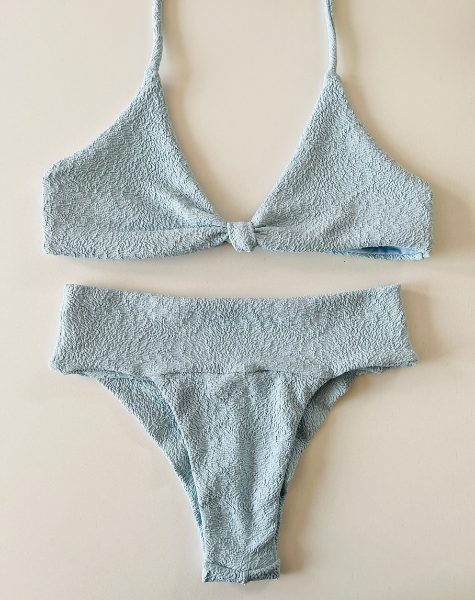 Conjunto Top Nó com Calcinha Asa Delta Acinturada Azul Mediterrâneo