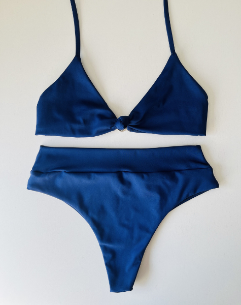 Conjunto Pontal com Top Nó e Calcinha Hot Pants Azul Marinho