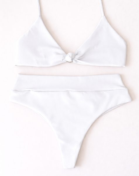 Conjunto Pontal com Top Nó e Calcinha Hot Pants Branco