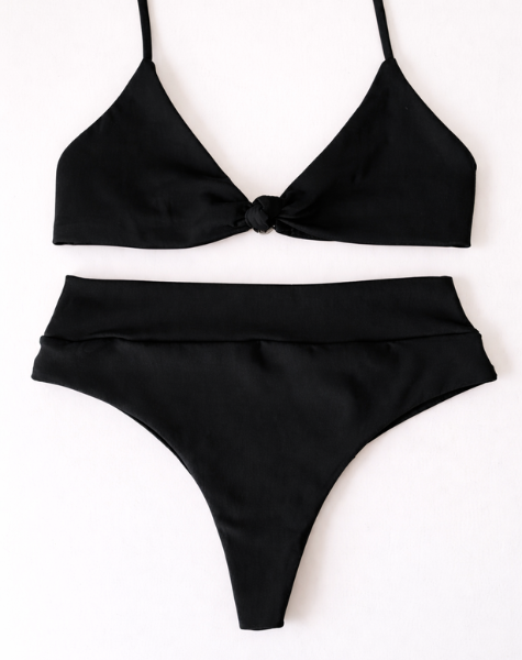 Conjunto Pontal com Top Nó e Calcinha Hot Pants Preto