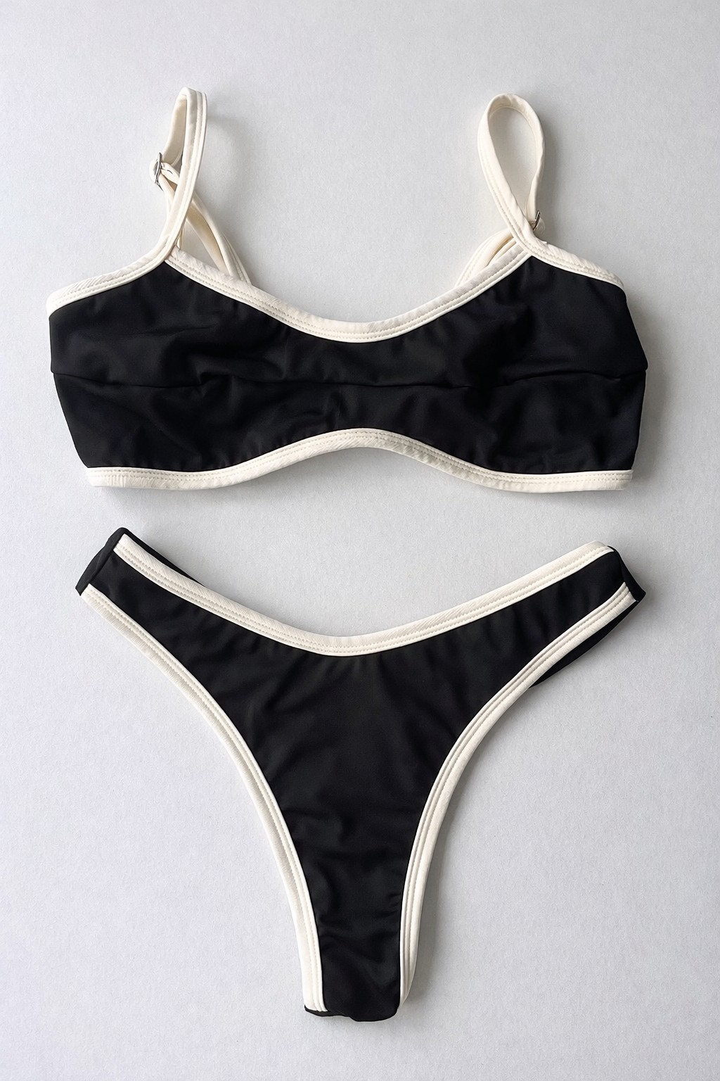 Conjunto Prainha com Top Reto Versátil e Calcinha Asa Delta Preto Duo