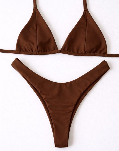 Conjunto Sossego com Top Triângulo Fixo e Calcinha Asa Delta Marrom