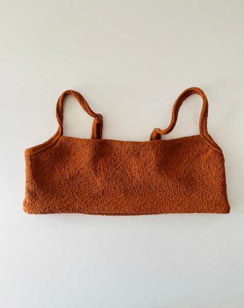 Inspirado na força ancestral da terra e nas raízes que conectam corpo e alma à natureza, o Top Reto Encantos da Terra representa a cápsula Terra da coleção Encantos de Vargem. Em tom terracota com leve textura, sua cor remete aos caminhos naturais, à terra quente e ao pulsar silencioso da natureza viva sob nossos pés.